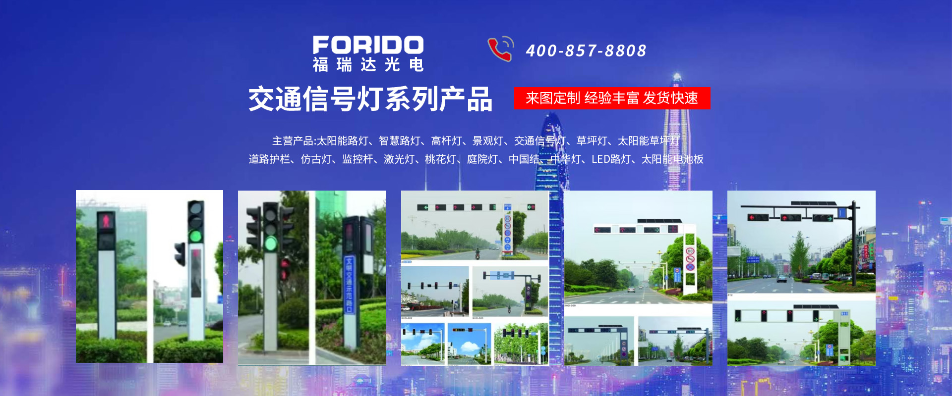 揚(yáng)州福瑞達(dá)光電科技有限公司位于淮左名都?xì)v史文化名城、中國(guó)路燈制造基地?fù)P州市北郊菱塘工業(yè)園,公司占地面積76000平方米,注冊(cè)資金10518萬(wàn)元,擁有高級(jí)技術(shù)嫻熟的員工280多人,擁有大型折彎?rùn)C(jī)、激光切割、數(shù)控注塑機(jī)、壓鑄機(jī)、自動(dòng)埋弧焊、氣焊、彩色粉末靜電噴塑等大型自動(dòng)化設(shè)備,我公司是一家集設(shè)計(jì)、研發(fā)、生產(chǎn)、銷售、施工安裝服務(wù)為一體的戶外交通照明產(chǎn)品制造商,主要生產(chǎn)智慧路燈、太陽(yáng)能路燈、LED路燈、高桿燈、景觀燈、交通信號(hào)燈、交通標(biāo)志牌、通信鐵塔、路跨鋼結(jié)構(gòu)、公交站臺(tái)、太陽(yáng)能光伏組件、景點(diǎn)亮化、樓宇亮化工程的設(shè)計(jì)施工等。公司秉承開(kāi)拓創(chuàng)新、銳意進(jìn)取、精誠(chéng)服務(wù)的企業(yè)精神,堅(jiān)持以“誠(chéng)信為本、技術(shù)為先、服務(wù)是金”的合作理念,我們憑借先進(jìn)的制造工藝、優(yōu)質(zhì)的產(chǎn)品質(zhì)量、合理的市場(chǎng)價(jià)格和完善的售后服務(wù)贏得了廣闊的市場(chǎng)和客戶的信賴。 我公司已通過(guò)ISO9001質(zhì)量體系認(rèn)證、ISO14001環(huán)境管理體認(rèn)證,CQC產(chǎn)品認(rèn)證,中國(guó)節(jié)能產(chǎn)品認(rèn)證,通過(guò)“CCC”強(qiáng)制性產(chǎn)品認(rèn)證,具有市政總承包,照明,交安,設(shè)計(jì)等資質(zhì)···